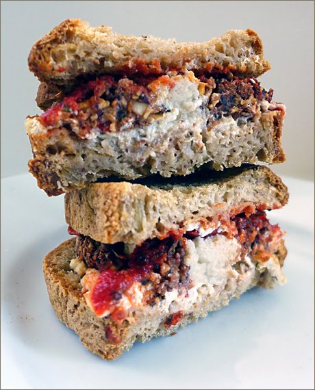 In the cookbook, the meatballs are shown in a meatball sub sandwich, which is kind of hard to pull off in a gluten-free version without advance planning to locate the rolls. Here's my version. The only thing I'm missing (beside the rolls) are the fried onions. Next time.