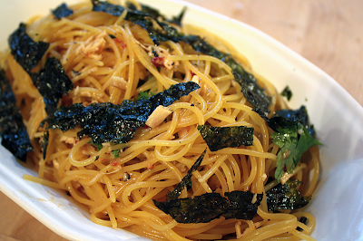 mmmm... nori in a noodle salad. makes total sense. problem w/ spiced nori is that I will eat all of it right away and have none for the recipe... that is a delicious problem indeed.